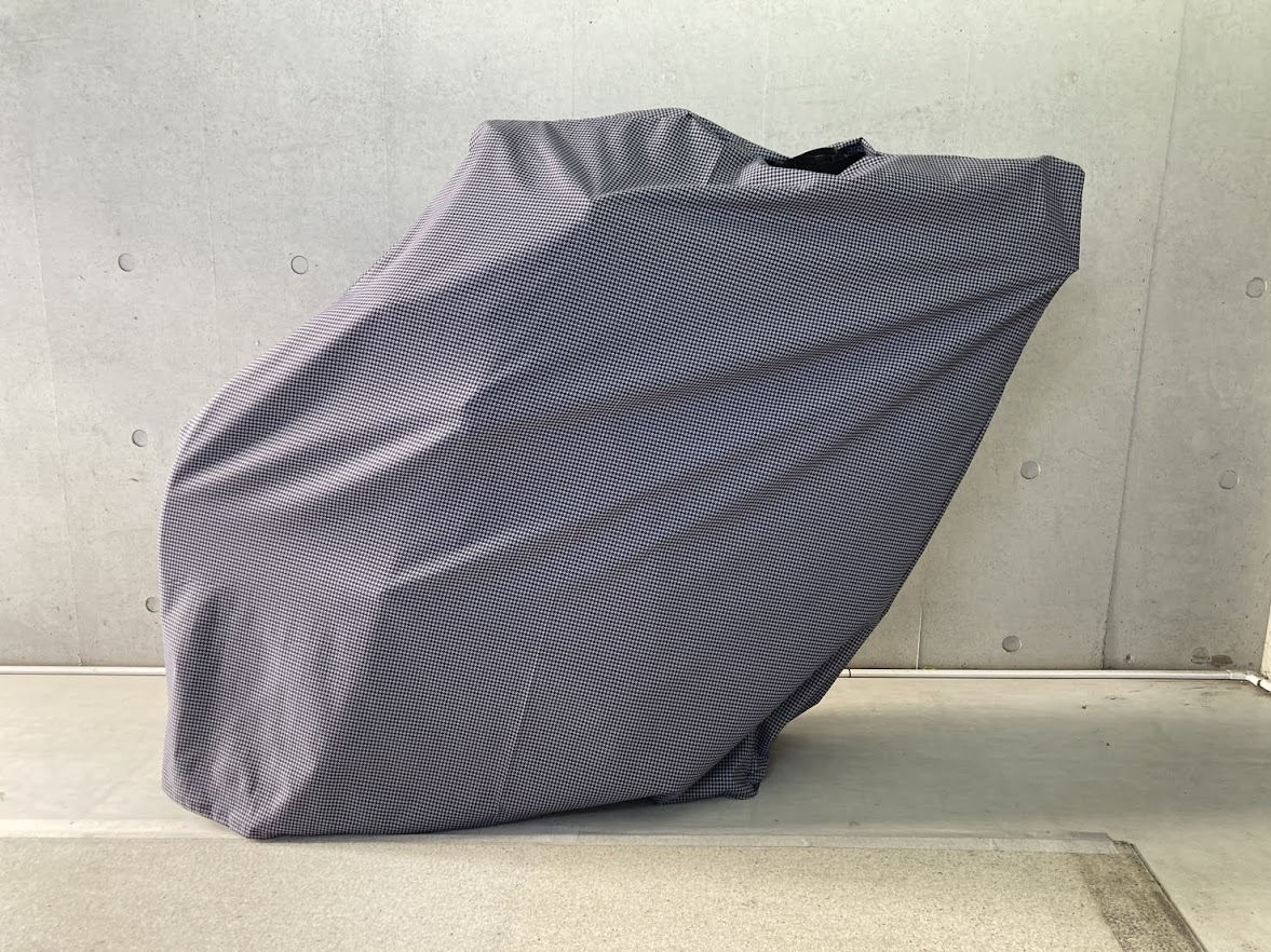 その際、輪行袋の裾が捲れて車体が見える事のない工夫をしております(現在特許出願中)