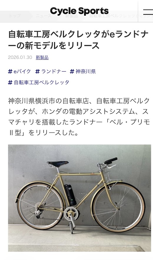 サイクルスポーツ様よりベル・プリモをご紹介いただきました